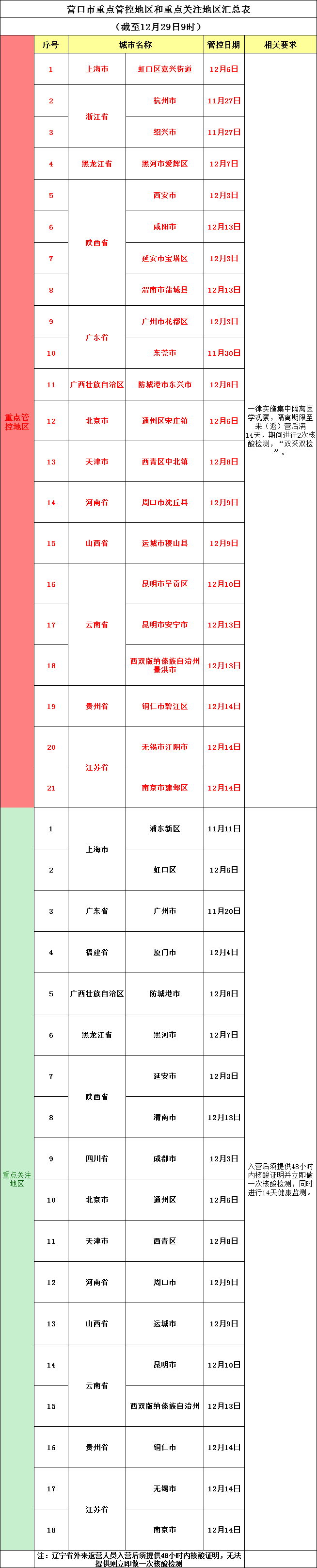 营口市重点管控地区和重点关注地区汇总表