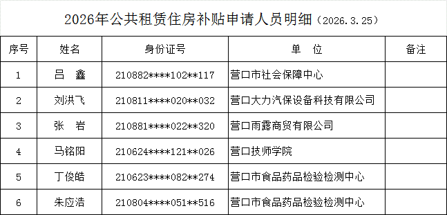 2026年公共租赁住房补贴申请人员明细(2026.3.25)